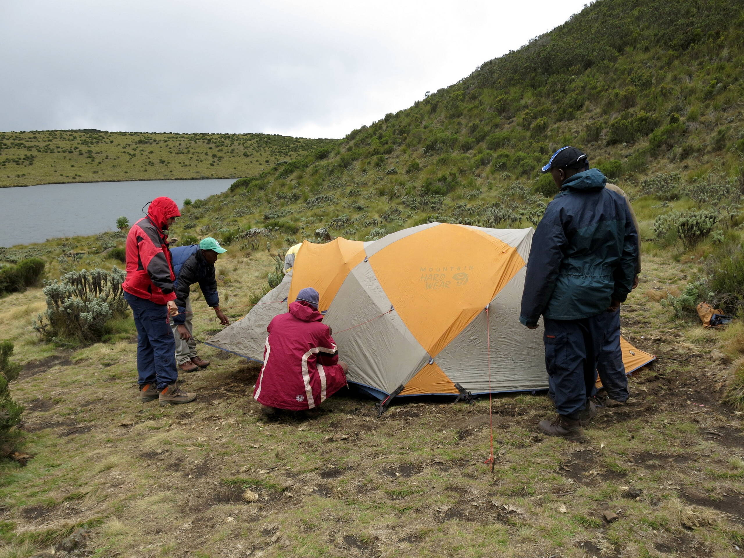 Die Gipfelbesteigung bereitete keine Probleme, ausser dass es ein wenig kalt und windig war. Vom Point Lenana aus konnten wir sogar in der Ferne den Kilimanjaro und den Mt. Meru erspähen. Sehr erfreulich war, dass unsere 4 Begleitpersonen (Bergführer, Koch, Hilfskoch, Träger) gut Englisch sprachen und sie am Ende sogar von sich aus allen herumliegenden Abfall einzusammelten und wieder ins Tal mitnahmen.