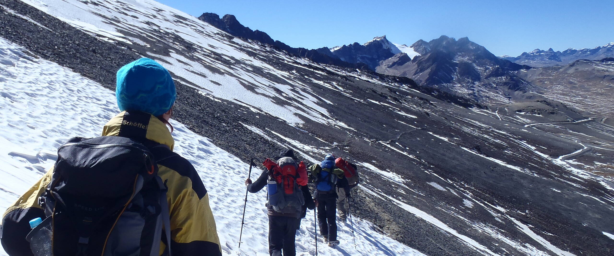 Nach einem Trainingstag mit Steigeisen und Seil auf dem Tarija Gletscher, setzen wir unser Trekking in Richtung Maria Lloco fort. Wir überwinden zwei 5000 m hohe Pässe und wie auf...